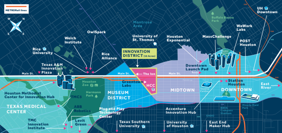 - The Houston Innovation corridor, which consists of a a four-mile expanse across the city’s urban core and is anchored by Rice University's Ion, continues to take shape.