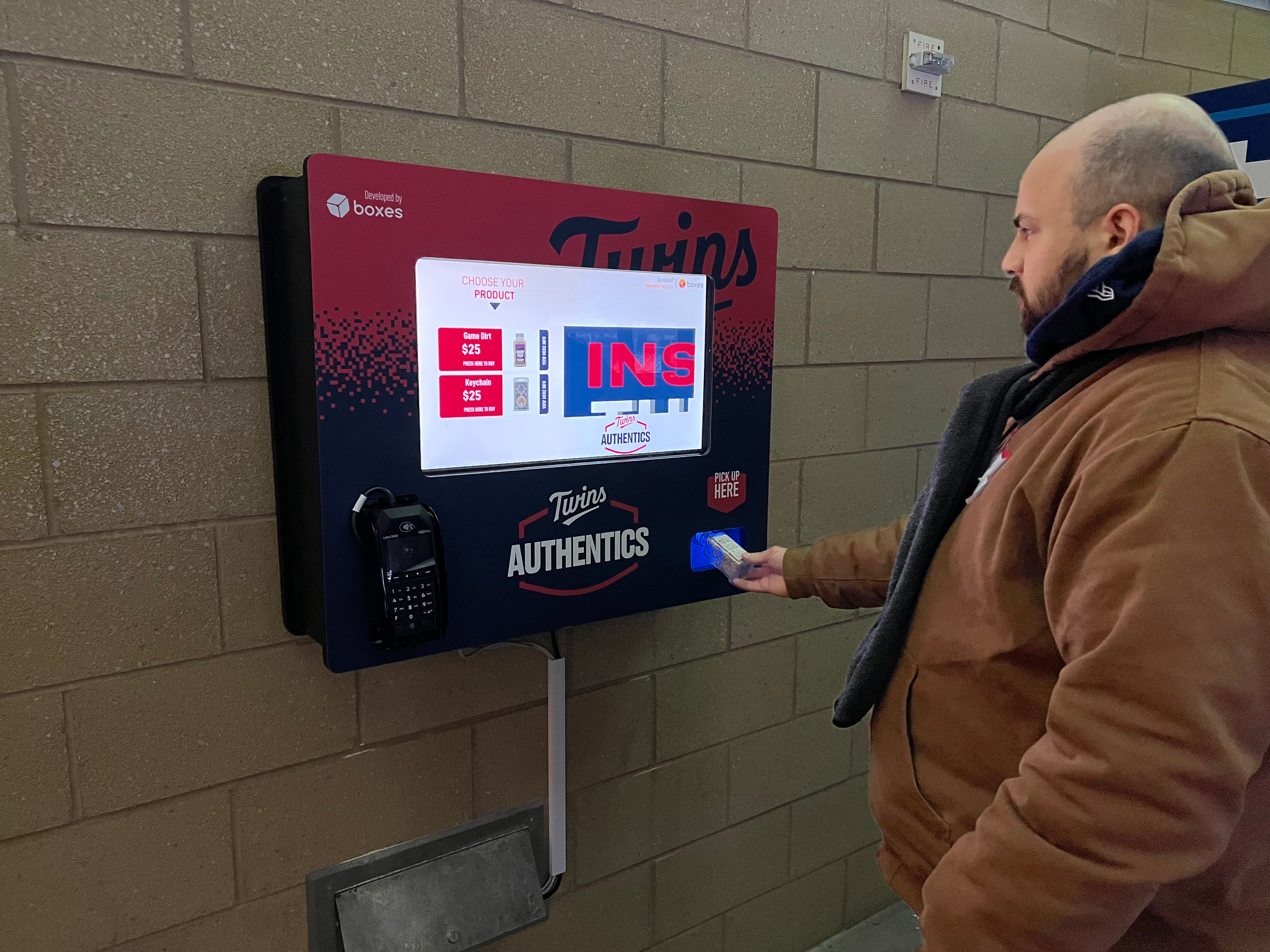 This led to a partnership with the Minnesota Twins, where Boxes devices at Target Field dispensed brand merchandise like keychains and bottles of field dirt.