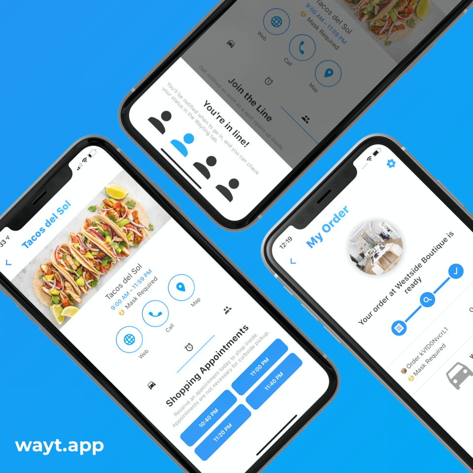 The Wayt app, created during the stay-at-home order in March, presents itself as an efficient and easy-to-use platform to streamline shopping during the times of the coronavirus. The app provides businesses and their customers with a platform to communicate making curbside pickup, booking appointments, and joining a virtual line a breeze.