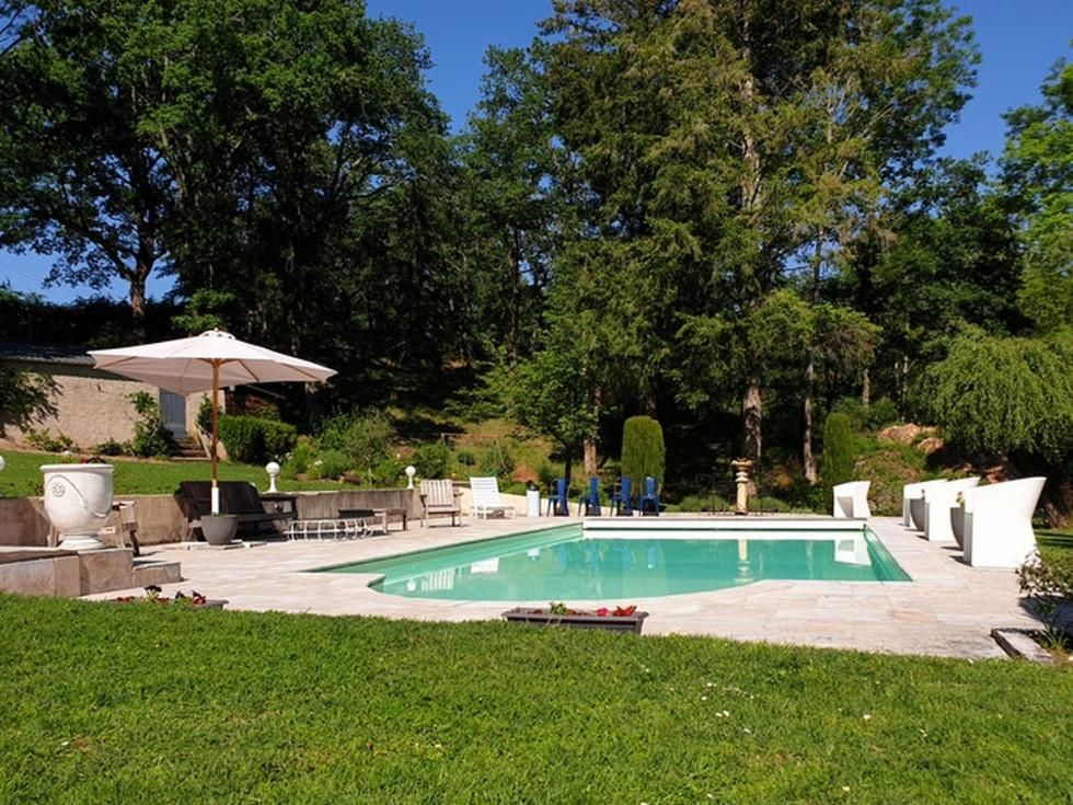 - This gorgeous pool features a very large pool space, a garden, lawn and deck chairs, a barbecue, table and chairs and a lawn for bowling and other games.