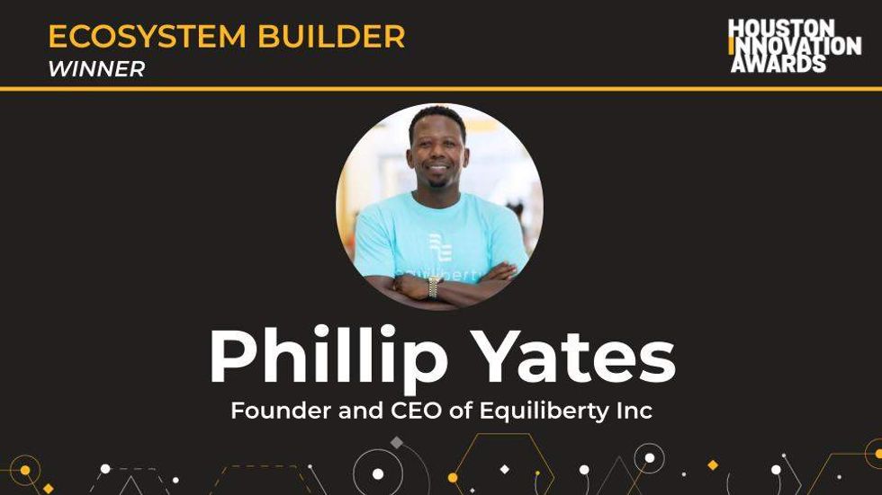 Attorney-turned-entrepreneur Phillip Yates is the founder and CEO of Equiliberty Inc., a Houston-based fintech platform that connects users with resources to build wealth. Deeply involved in the Houston innovation sector, he helped establish a pre-venture business incubator at the Houston Area Urban League Entrepreneurship Center in 2011. He has served as general counsel for the Business Angel Minority Association and Direct Digital Holdings Inc., and currently serves as chairman of Impact Hub Houston.