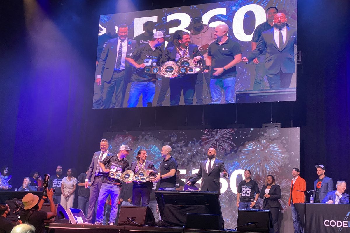 E360 and Honeycomb Software share the win at the 2023 Houston CodeLaunch event. Photo by Natalie Harms/InnovationMap