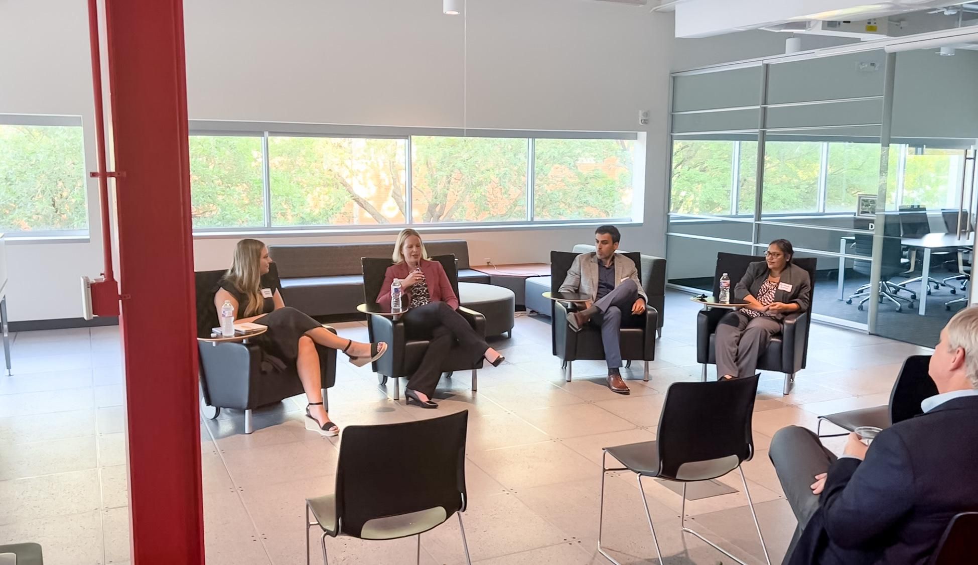 An expert panel within Technology transfer discussed some of the unique obstacles innovators face as they go from academia into the market — like patenting, funding, the valley of death, and more.