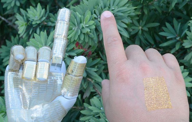 The device is reported in the paper to be made of a metal oxide semiconductor on a polymer base. It could be attached to a robotic hand or prosthetic, as well as other robotic devices, that can collect and report information to the wearer.