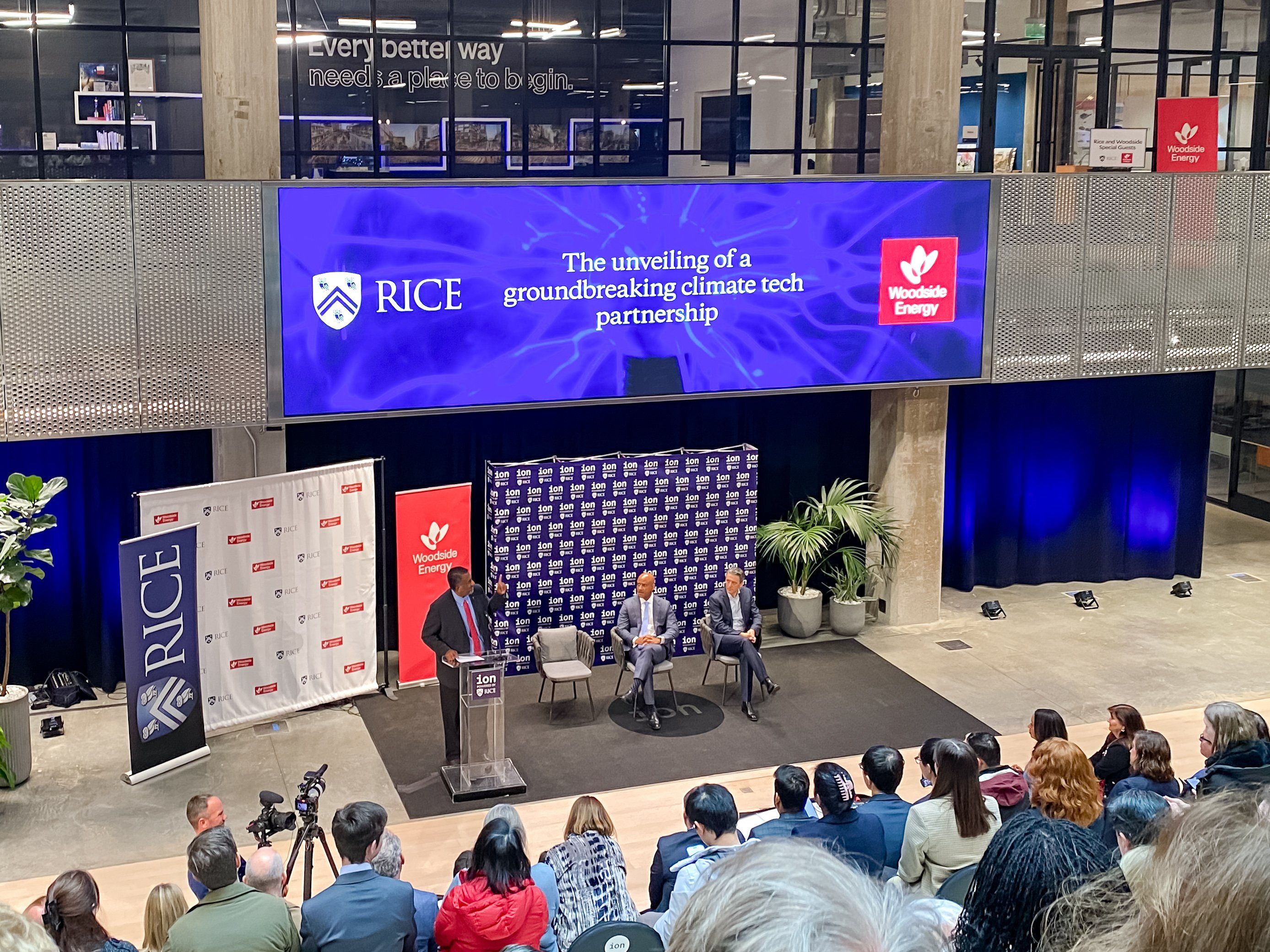 Woodside, which has over 800 employees based in Houston, has been a partner at the Ion since last spring. Daniel Kalms, Woodside Energy's CTO and executive vice president, explains that the new initiative falls in line with the three goals of Woodside's climate strategy, which includes keeping up with global energy demand, creating value, and conducting its business sustainably. The company has committed a total of $5 billion to new energy by 2030, Kalms says.